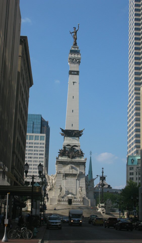 The Indiana Soldiers and Sailors Monument is a 284 ft 6 in-tall neoclassical monument located on Monument Circle in the center of Indianapolis. It was designed by German architect Bruno Schmitz and completed in 1901.