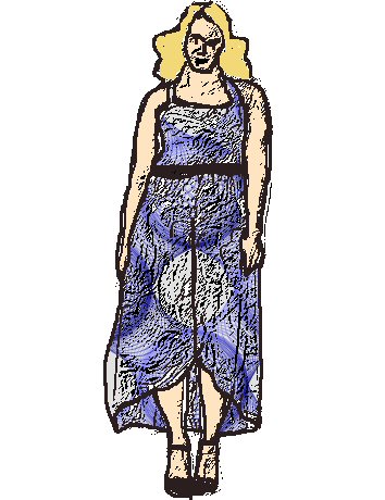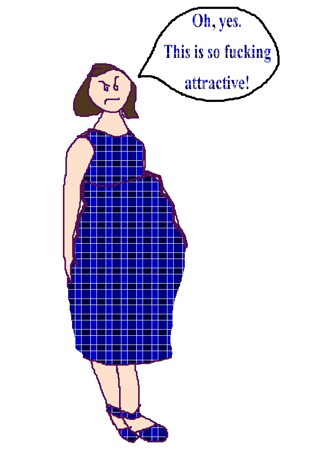 You know what all the stores these days thing big girls want to wear? Clingy knit fabrics! Sheathe dresses! Oh my fucking shit, the horror! You know, if a big girl has a nice hourglass shape, she can get away with clingy knit dresses, but what about the rest of us? Do we want to look like we are 23 months pregnant with triplets? I’m telling you, that’s right, you Mr. Big-Girl Dress Designer—we do not.